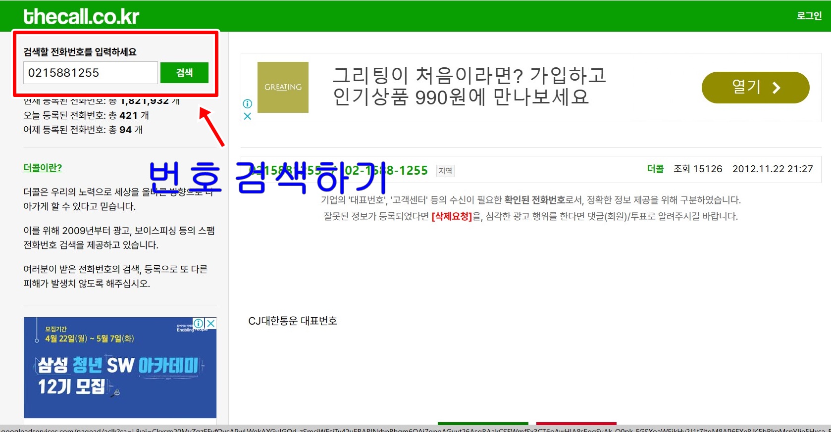 더 콜 스팸 전화번호 조회 이용하기(PC 버전)