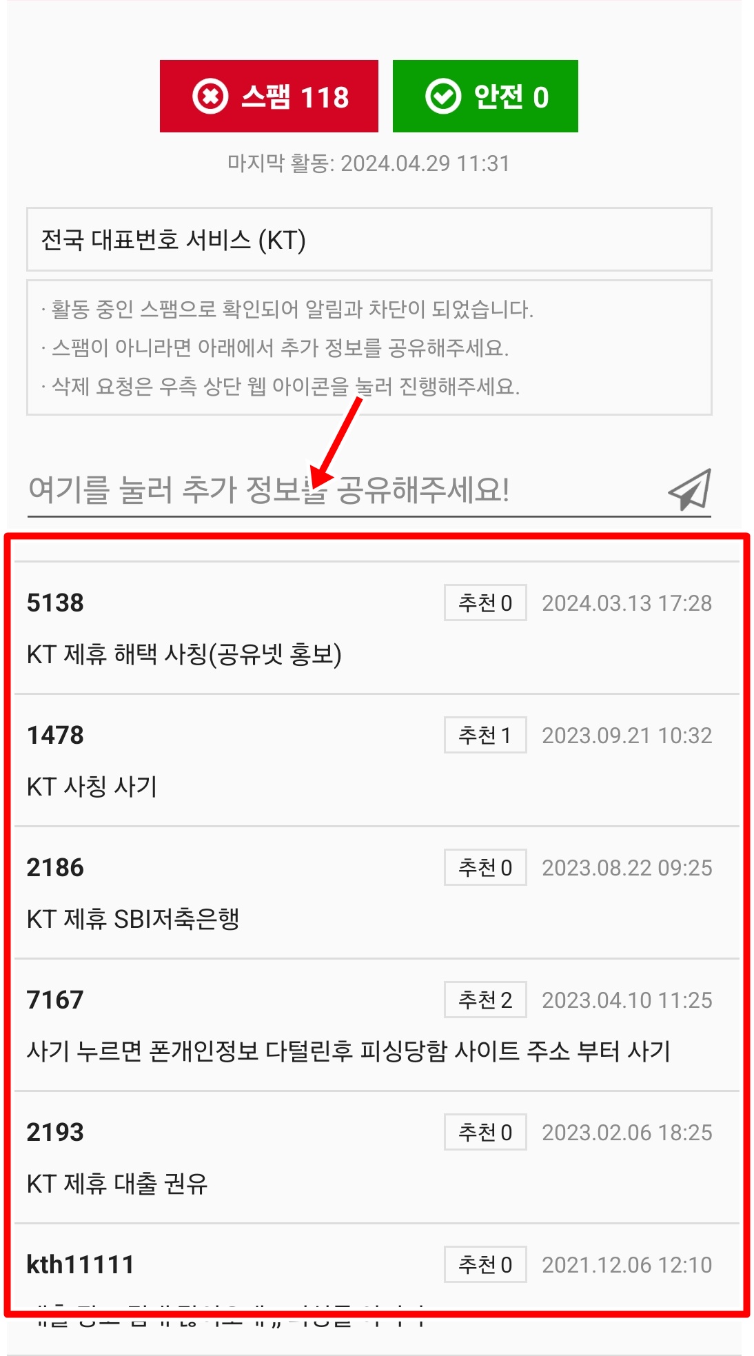 하나씩 번호가 모여서 여러 스팸번호나 광고성 연락을 사전에 알고 차단하고 예방할 수 있습니다.