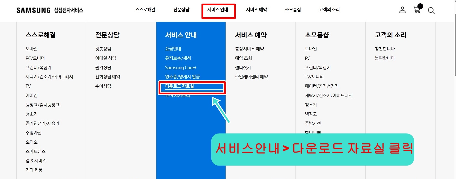 삼성전자서비스 홈페이지에서 다운로드 자료실