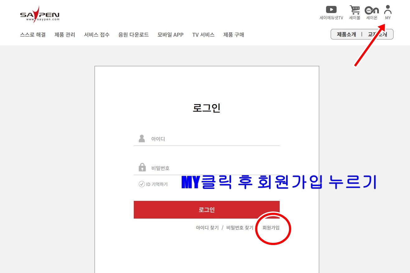 사용하는 인터넷에서 세이펜이라 검색하거나 https://www.saypen.com로 접속한 후 회원가입을 진행합니다.