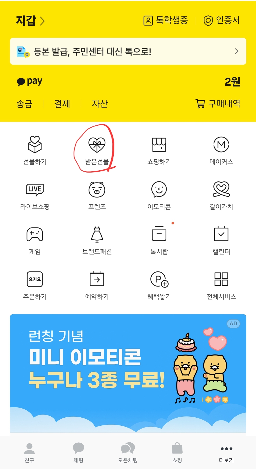 살다 보면 카톡 선물을 많이 주고받고 하는데요