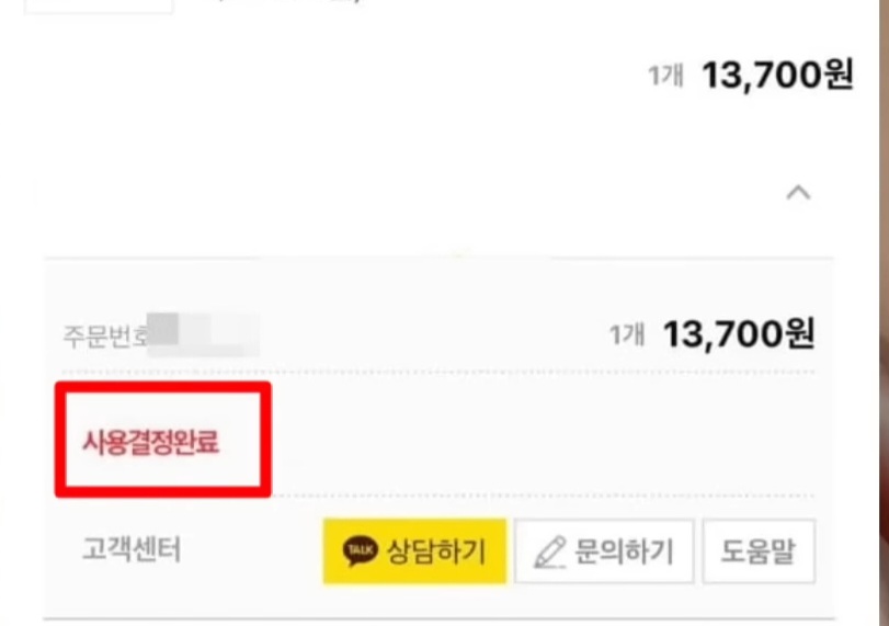 이렇게 구매결정이나 구매결정완료는 정상적으로 사용완료한 선물입니다
