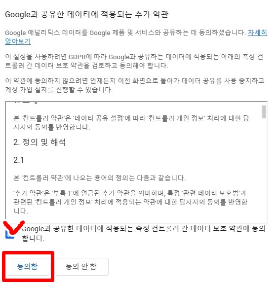 3. 구글 애널리틱스 약관 계약 동의 및 추가 약관 동의