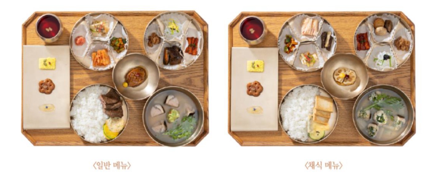 채식 메뉴는 전복초 대신 뿌리채소로 만든 음식이 나오는데 희망하시는 분은 행사일 3일 전에 티켓링크 콜센터 1588-7890로 사전 신청을 꼭 해야 합니다.