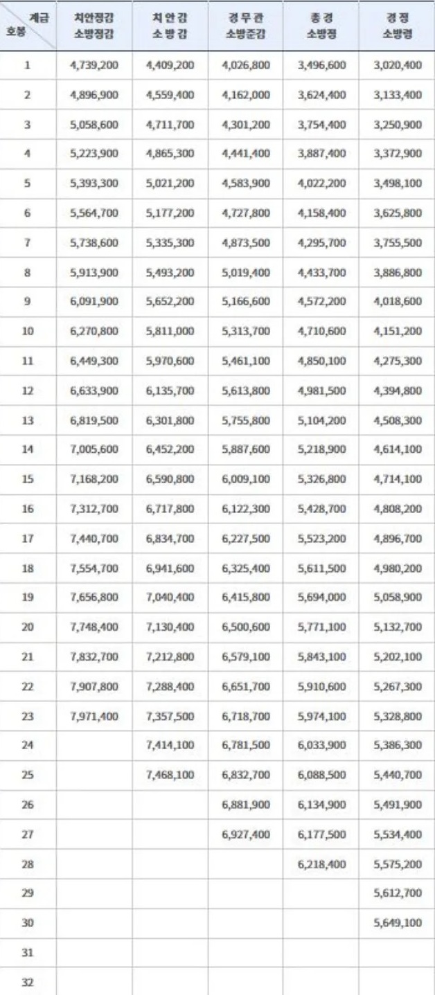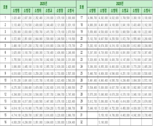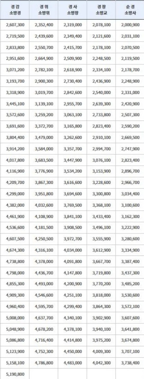 소방공무원 연봉상세