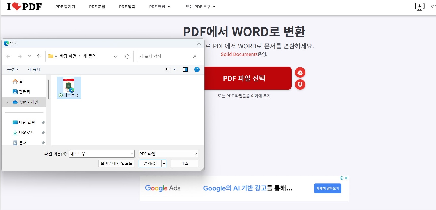 PDF 파일 무료 변환 사이트 - iLovePDF