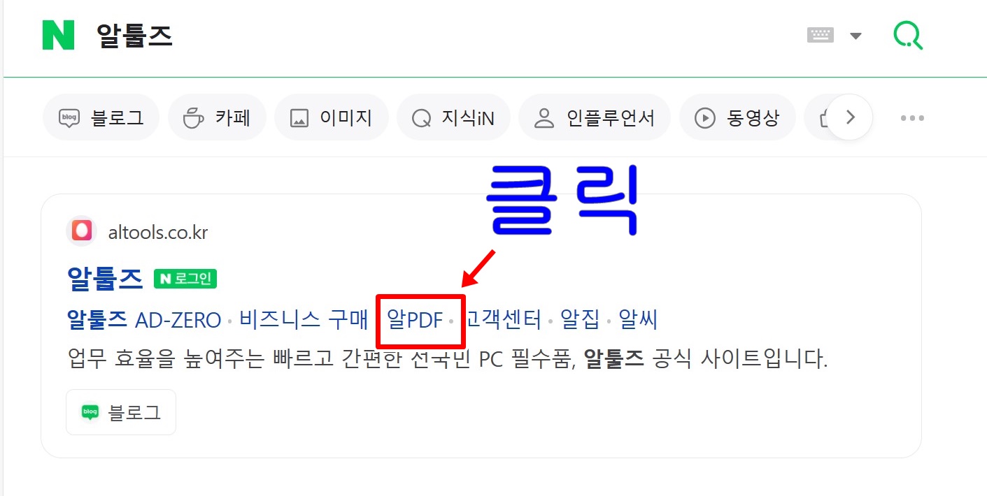 알툴즈 사이트 접속 후 다운로드 > 알 PDF를 선택하여 다운로드할 수도 있지만 간단하게 메인에 있는 알 PDF를 클릭 후 설치하셔도 무방합니다.